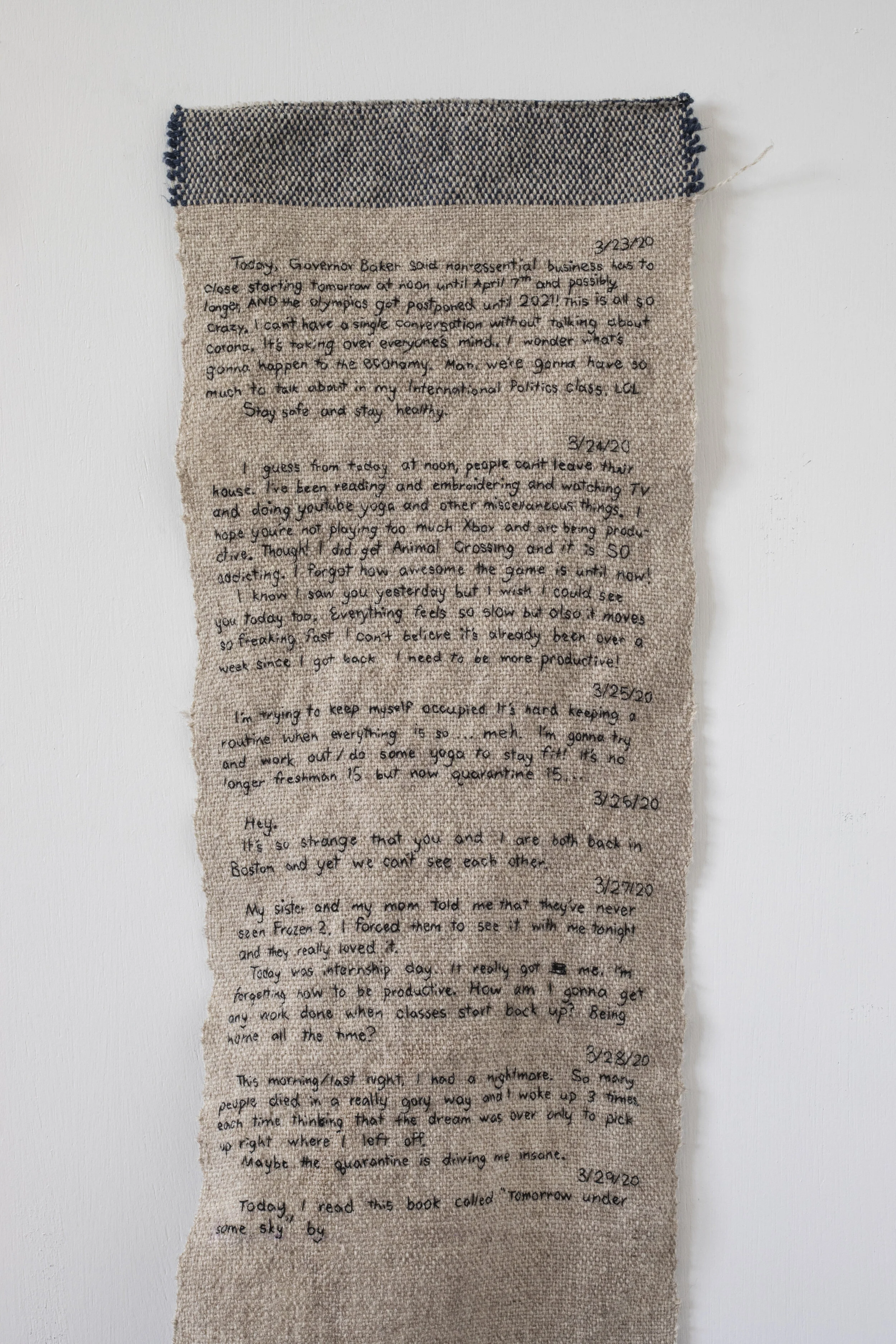 I write in my journal and embroider the words as the days and the pandemic goes on.